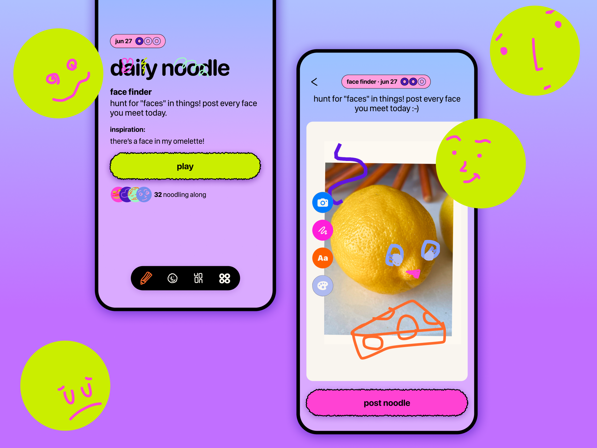 Each day, you get a “Noodle” - a short, playful creative prompt you can do in about three minutes. No experience needed. Just one small action that helps you loosen up, shift out of autopilot, and replace a few minutes of scrolling with something more alive.